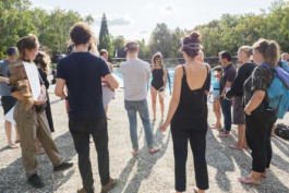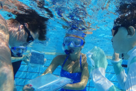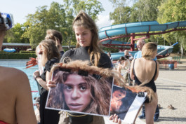 Mit ihrer Unterwasserperformance Selfish Shellfish: The Aquatic Ape lässt Monster Chetwynd das Publikum in einen unbekannten Teil der Geschichte eintauchen – genauer: in die Theorie, dass die Vorfahren des modernen Menschen aquatisch waren, also Schwimmer:innen und Taucher:innen.