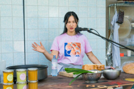 Gefriergetrocknete Shrimps mit gefriergetrockneter Kichererbsen-Mayo und eingelegten Zitronen.